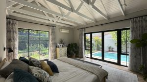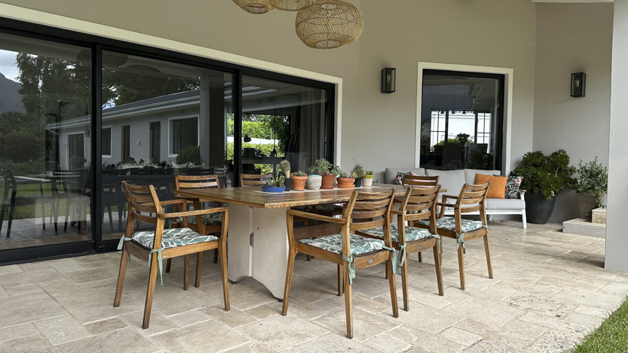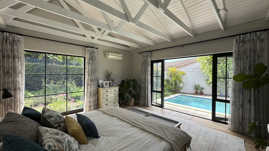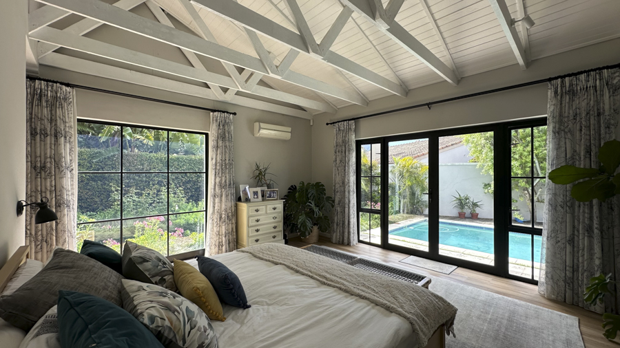 Set in the leafy suburb of Constantia, Happy Days is a refined yet relaxed home that offers both charm and versatility for film productions. The property features a bright, contemporary design with soft neutral finishes, natural textures, and large open spaces that are perfectly suited to camera work. Expansive sliding and folding glass doors blur the lines between indoors and outdoors, creating beautifully lit interiors and fluid movement between spaces.