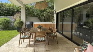 - Expansive glass doorsconnecting indoor and outdoor spaces
