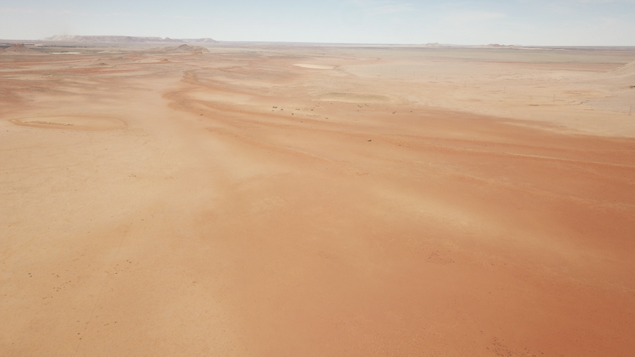 The terrain features hardy shrubs, scattered acacias, and dry riverbeds, creating a raw and atmospheric backdrop ideal for large-scale cinematic scenes or intimate, dramatic moments. Gravel tracks and wide-open spaces add to the sense of remoteness and isolation, while the surrounding silence enhances its authenticity.